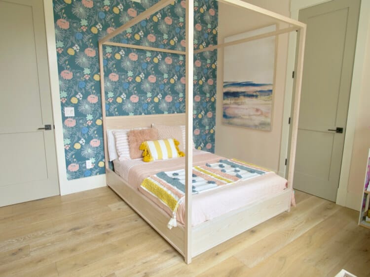 The design of this bed is simple but we kept the bed low to the ground so no monsters could fit under her bed and we used higher quality materials, oak in this case, for a beautiful finish!
