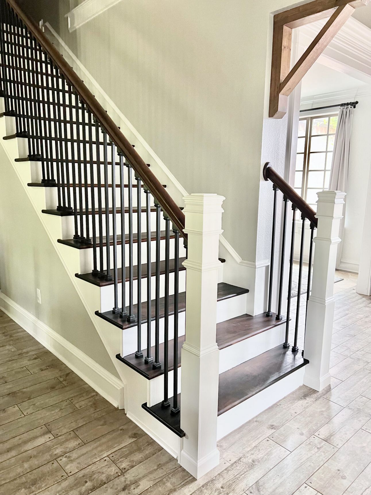 My goal was to update my 15 year old staircase on a budget and by myself. Come check out my DIY Staircase Remodel with a full tutorial and lots of pictures!