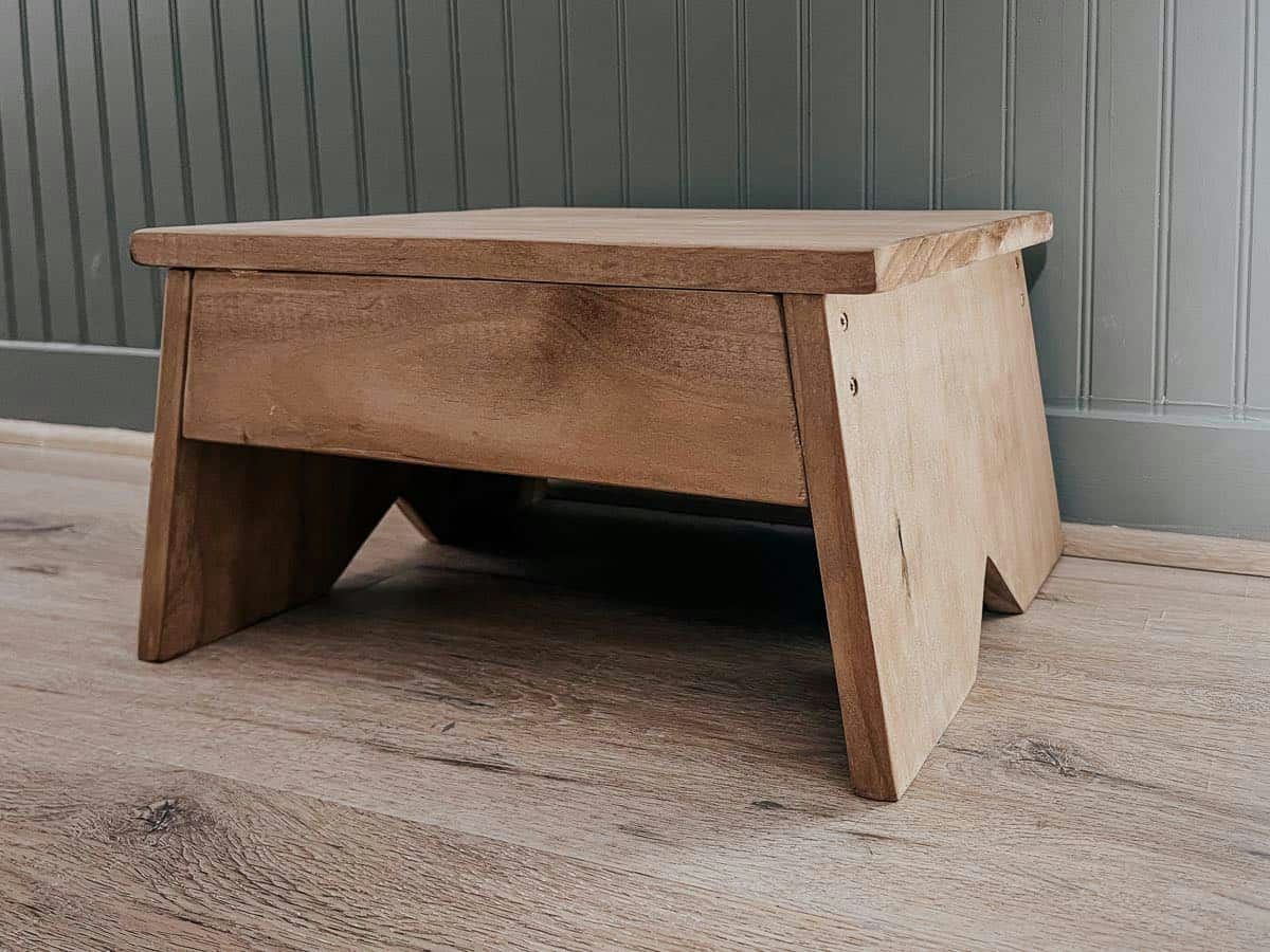 Our friend over at Love & Renovations decided it was time to swap those out for something a tad more elegant – a charming wooden step stool crafted with just two boards and an hour of dedication.