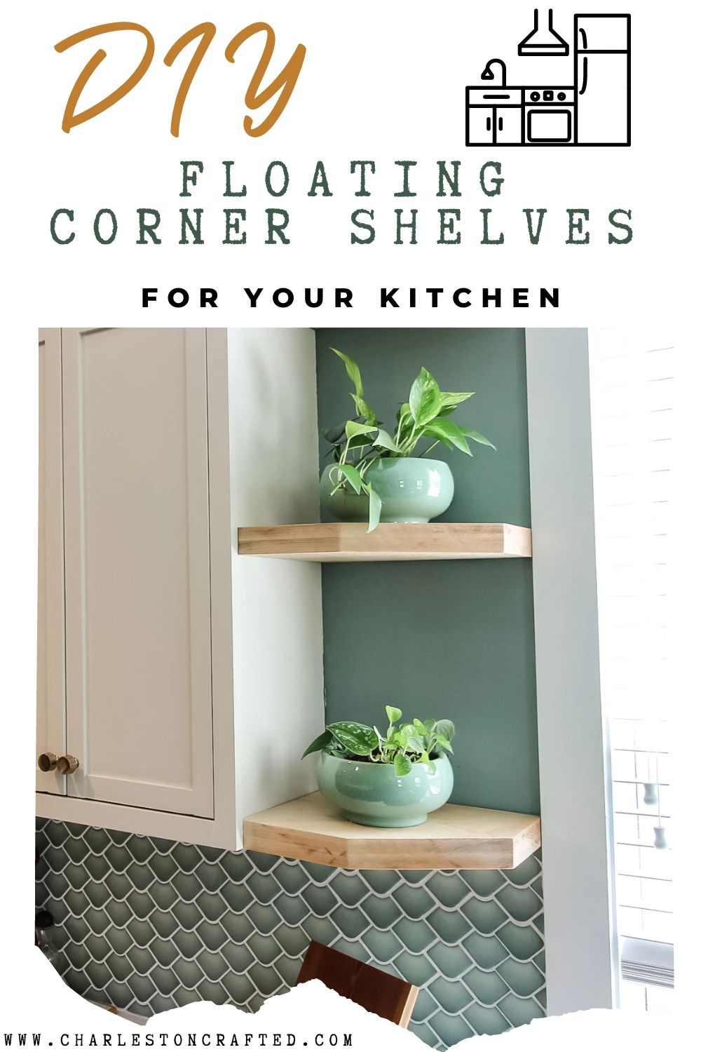 These beautiful floating corner shelves really are a great addition to a kitchen.